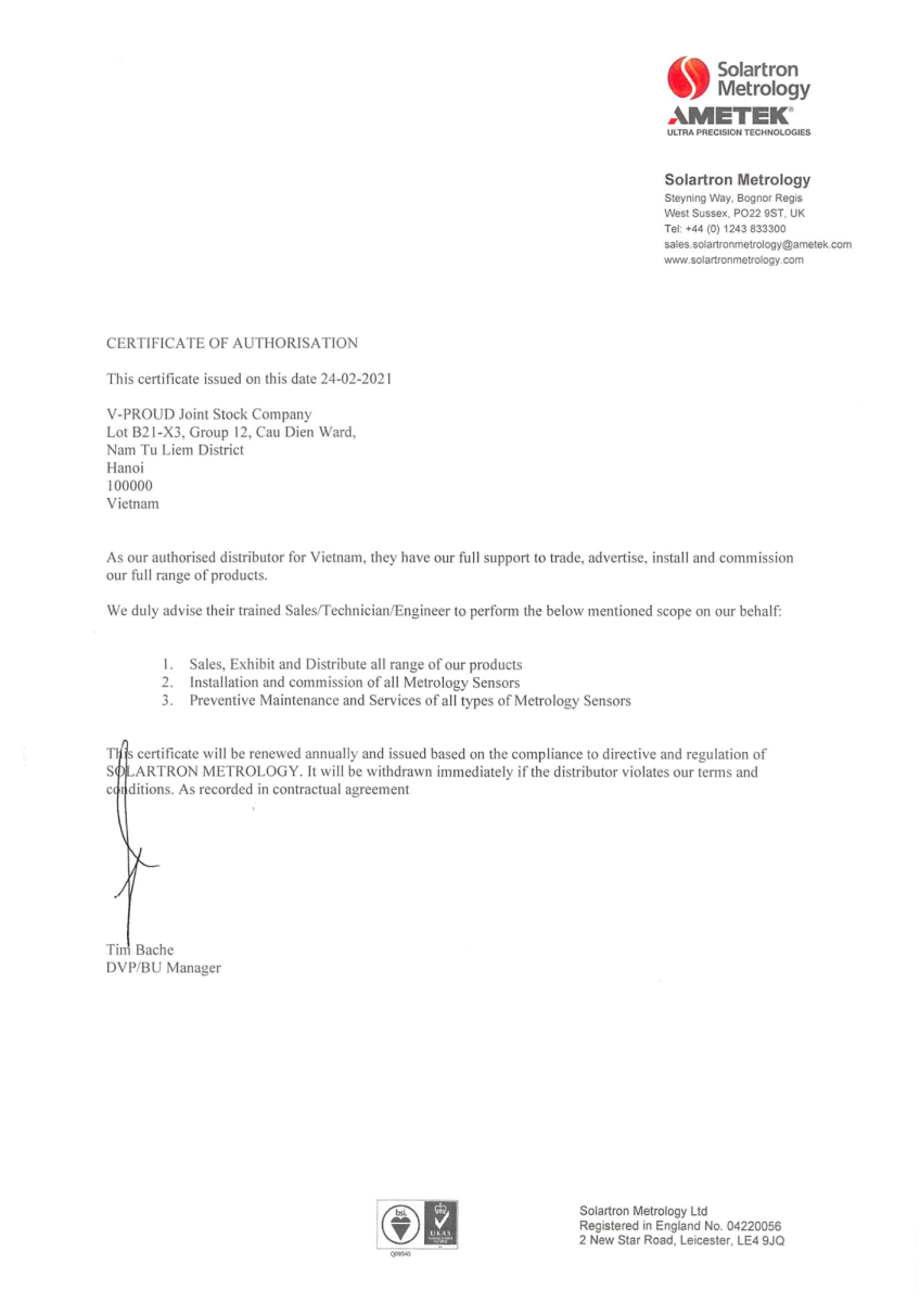 Với vai trò là đối tác chiến lược của hơn 12 thương hiệu đo lường hàng đầu thế giới, V-Proud cam kết mang đến những giải pháp toàn diện – từ thiết bị đo lường cơ bản đến hệ thống kiểm soát chất lượng tự động hóa tích hợp, từ dịch vụ kỹ thuật chuyên sâu đến đào tạo nhân sự chuẩn quốc tế. Mỗi giải pháp đều được thiết kế sát với bài toán thực tế của khách hàng, tối ưu chi phí đầu tư, nâng cao hiệu quả quản lý chất lượng và hướng tới sản xuất thông minh – Industry 4.0. Hơn cả một nhà cung cấp, chúng tôi tự hào là người bạn đồng hành tin cậy – sẵn sàng chia sẻ kiến thức, chuyển giao công nghệ và cùng khách hàng vượt qua mọi thách thức kỹ thuật. Chúng tôi hiểu rằng, thành công của V-Proud gắn liền với thành công của khách hàng, và chính niềm tin mà Quý vị trao gửi là động lực để chúng tôi không ngừng đổi mới và hoàn thiện.