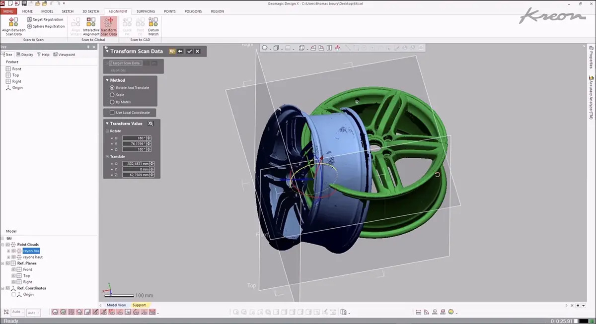 Căn chỉnh dữ liệu (Data alignment): Dữ liệu do máy quét 3D thu thập được sẽ được căn chỉnh khớp với mô hình CAD để đảm bảo sự tương quan chính xác giữa chi tiết thực tế và mô hình ảo.
