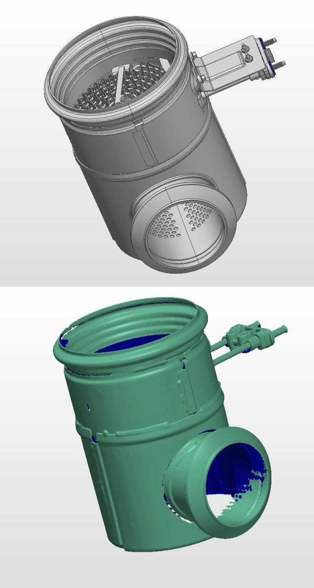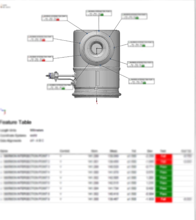 Phân tích và Xuất báo cáo đo kiểm: Dữ liệu quét thô được xử lý qua phần mềm DefInsight-AM, sau đó chuyển thẳng sang PolyWorks để lồng ghép (Alignment) với bản vẽ 3D CAD gốc. Hệ thống tự động trích xuất các thông số GD&T và CTQ để so sánh đối chiếu.
