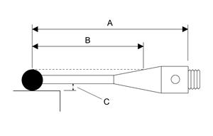 | Đầu dò CMM | Chiều dài kim đo máy CMM (khuyên dùng) |