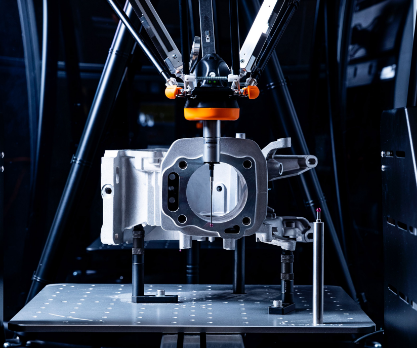 Máy đo Renishaw Equator đang đo bộ phận cylinder của xe máy