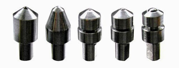 Trên các dòng máy đo độ cứng Rockwell, ta dùng mũi đo kim cương có góc ở đỉnh là 120 độ và bán kính cong R=0.2mm hay mũi đo viên bi thép được tôi cứng có đường kính 1/16, 1/8, 1/4, 1/2 Inch để ấn lên bề mặt mẫu thử.